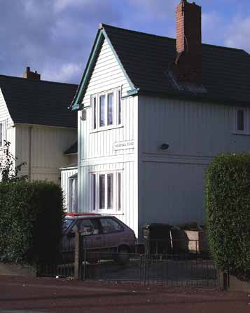construction. These wooden houses were erected in the 1920s and survive in good order today. They gave the idea for nearby Cedar Road, containing more of these houses as well as some prefabricated housing. |
