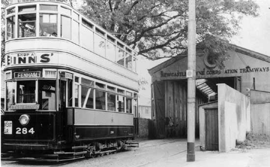 Tramways. There was a central generator at Manors in the city centre (electricity was novel at the time), and this was the depôt for the west of the city, the eastern shed was at Byker. |
