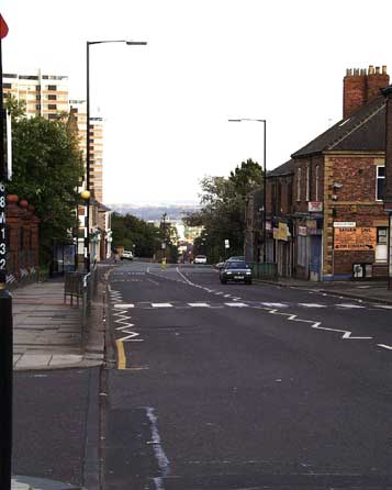 This westward looking view of West Road shows the shopping area. Fenham is to the right, and Benwell is to the left.